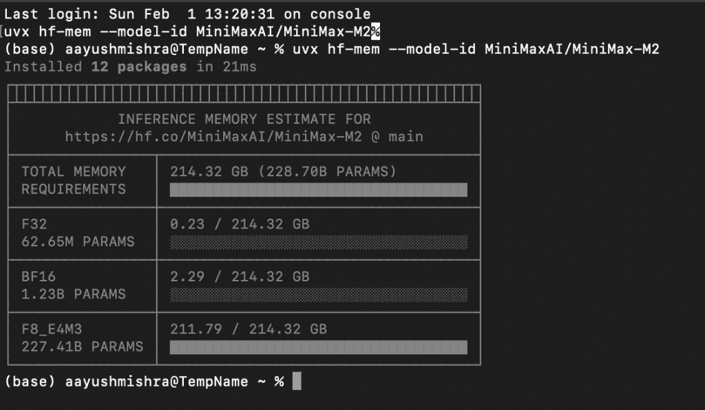 uvx hf-mem --model-id MiniMaxAI/MiniMax-M2